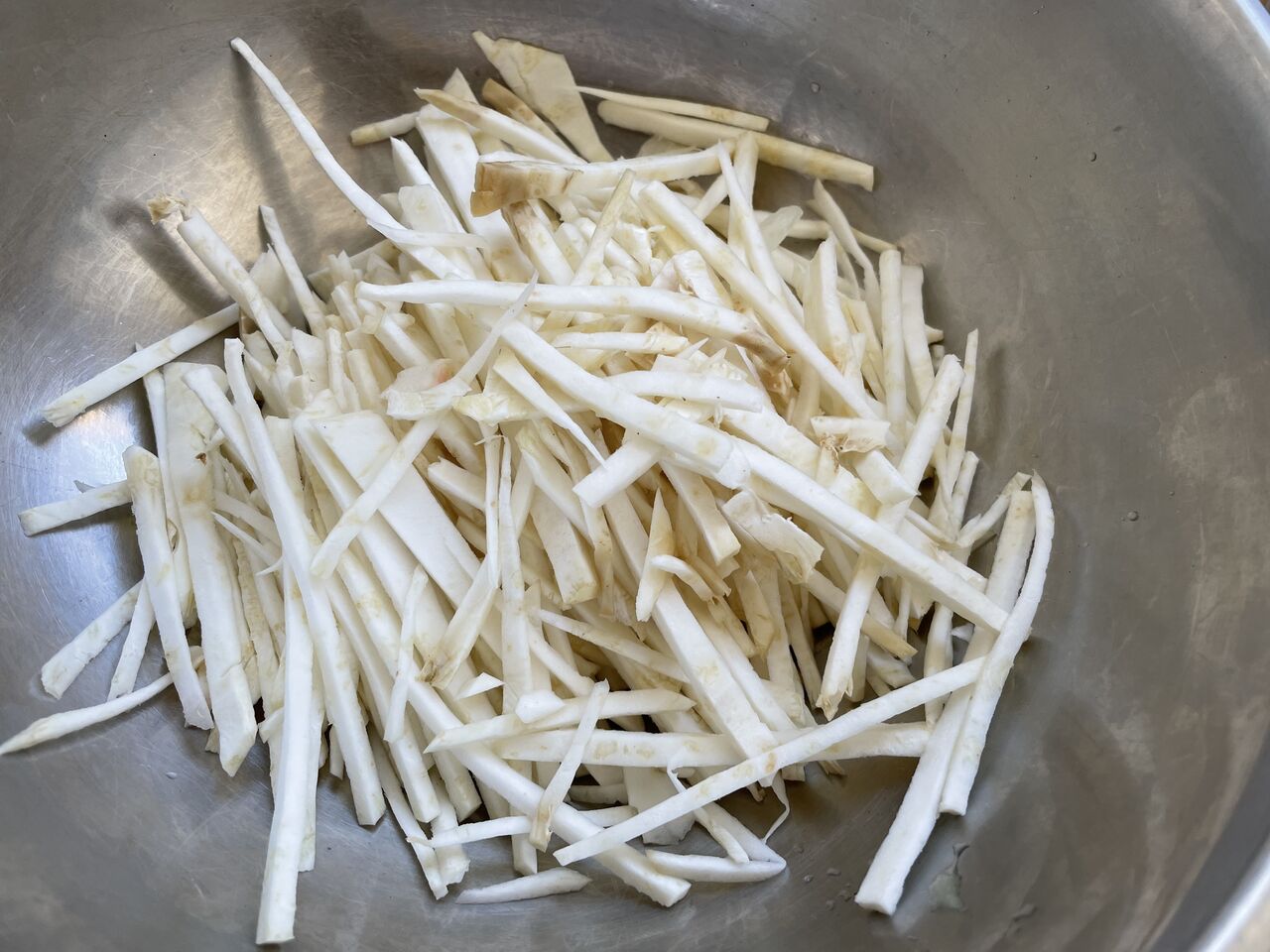 千切りにして他の野菜、調味料と合わせます。