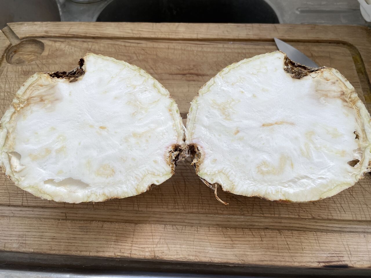 セロリの一変種だけどセロリとは違い、根茎部分を食べるそうです。セロリのような葉茎が生えますが、これは苦味が強いので食用に向かないそう。香りや栄養成分はセロリに近いです。