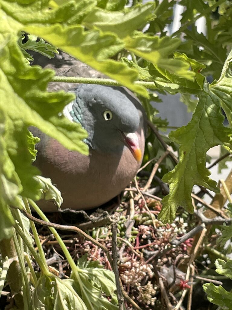 2週間ほど前から窓を開けたところにある小さなガーデニングプラントに鳩が来てました。