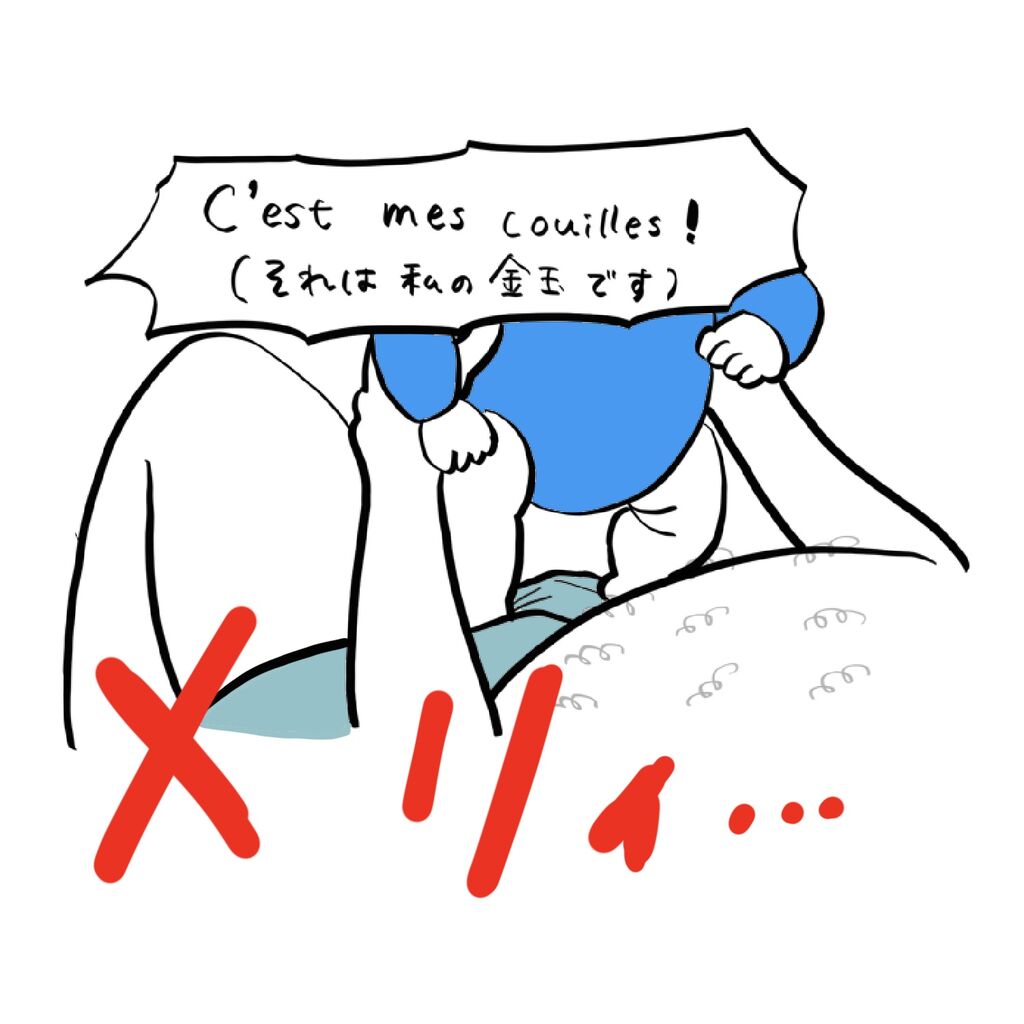 赤ちゃんがよく踏んじゃうもの 2022年08月07日 縦に抱っこできるようになったくらいから、立たせると嬉しそうにします。ぐずってるときでも立たせるとご機嫌なのでよくこのようにして遊ぶため、よく金玉を踏まれてます。2つの金玉を踏まれた場合、「mes couilles !」と複数形で叫び、どちらか一つの場合は「ma couille !」なので声だけで今どのような状態かよくわかります。ところでフランス語の金玉が女性名詞なのには納得いきません... Kindleまとめ本(0円)単行本発売中!うちのガイックさんヒロコブティック社2021-07-09 「フランス語」カテゴリの最新記事 < 前の記事次の記事 > コメント コメント一覧 (2) 1. ゆうこ 2022年08月07日 12:19 あはは🤣兄弟いらないってガイックらしいウィットに富んだ返し! 女性、男性名詞って男性っぽい女性っぽいで決められてきたものだと思ってたから金玉が女性名詞って語源を調べたくなりますね笑 2. もりもともりもと 2022年08月08日 09:41 emily in parisでは女性器が男性名詞であることが取り上げられていました!逆なんですね!不思議です😂 コメントフォーム 名前 コメント 評価する リセット リセット 顔 星 投稿する 情報を記憶
