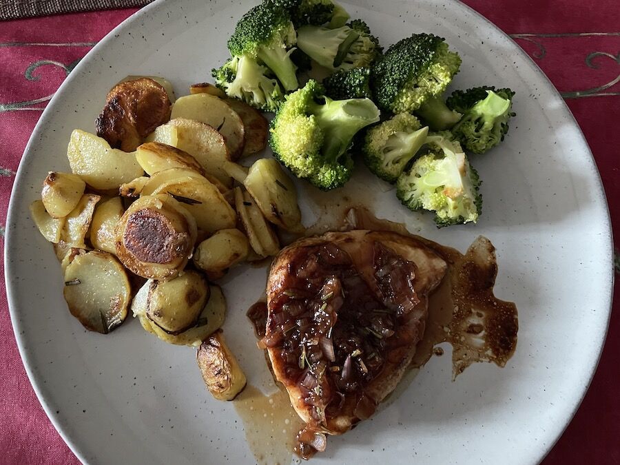最後はガイックシェフに作ってもらいました。「チキンと甘辛いちごのバルサミコソース」