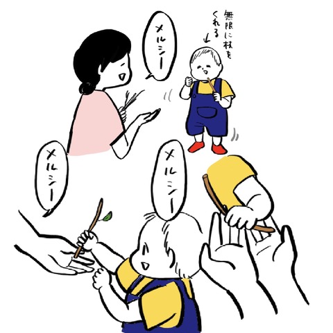 無限に枝をくれる 永遠に枝をくれるべべだもにいちいち「メルシー」と返していたら、「枝をあげると喜ぶ人」と思われたのか、近くで遊んでいた女の子も枝をくれました。とっても可愛かった。メルシー...!べべだもは枝を受け取ってくれれば誰でもいいのか、散歩している老人たちにも枝を配りま ... 続きを読む 2023年07月05日