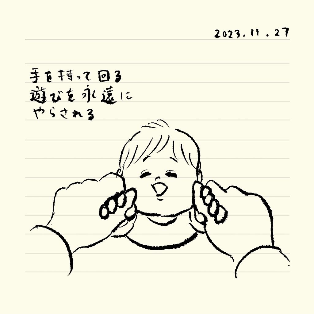 おもちゃよりも手を掴んでぐるぐる回転する遊びが好きで、何回も「やれ」と手を繋いできますが、何回か連続ですると私の目が回って気持ち悪くなります。