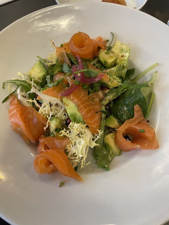 前菜は私はスモークサーモンの柚子ソースがけ。アボカドとかザクロとかはいってて、それがゆずのさわやかソースと合わさって最高でした。今度真似してみよう。