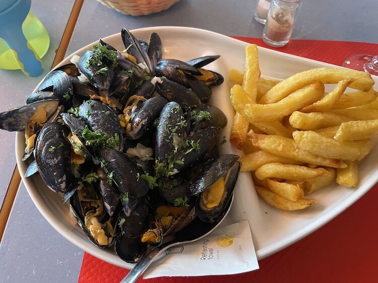 観光客で混雑する島のレストランでなんとかありつけたムール貝。結構美味しかった。