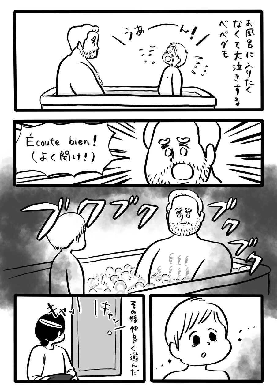 大きなオナラでお風呂イヤイヤが紛れました。よかったね(?)