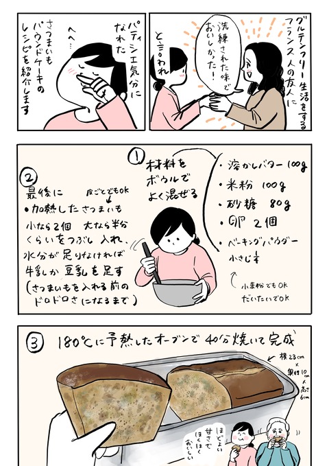 おいしくて何回も作ってるさつまいもパウンドケーキ グルテンフリー生活を送る友人への手土産に作ったさつまいもパウンドケーキです。グルテンフリー(小麦粉を使わない)お菓子やケーキって探すの難しいんですよね。でも米粉を使うことで簡単にできて、小麦粉よりもしっとりできました!もう何回もリピートしているお気に入り ... 続きを読む 2026年02月04日