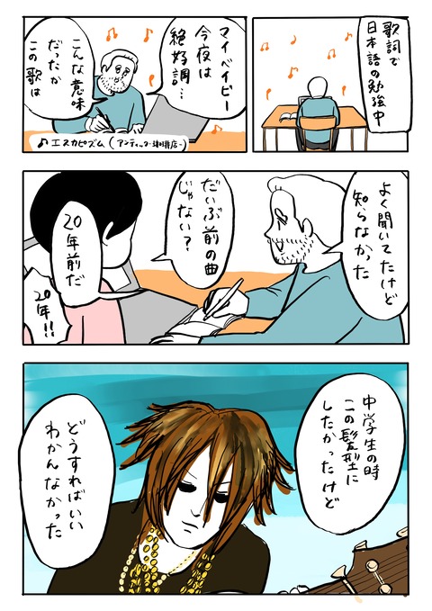 ガイックが中学生のときの憧れ こちらの曲です。ガイックが中学生の時から聞いていた曲だそうで、日本のV系バンドがその時代からフランスにも影響を与えていたことに驚きました。この曲が20年前という時間の早さにも。。。このマンガをXに投稿したら「どうすればいい、わかんなかった」というガイックに対 ... 続きを読む 2026年02月27日